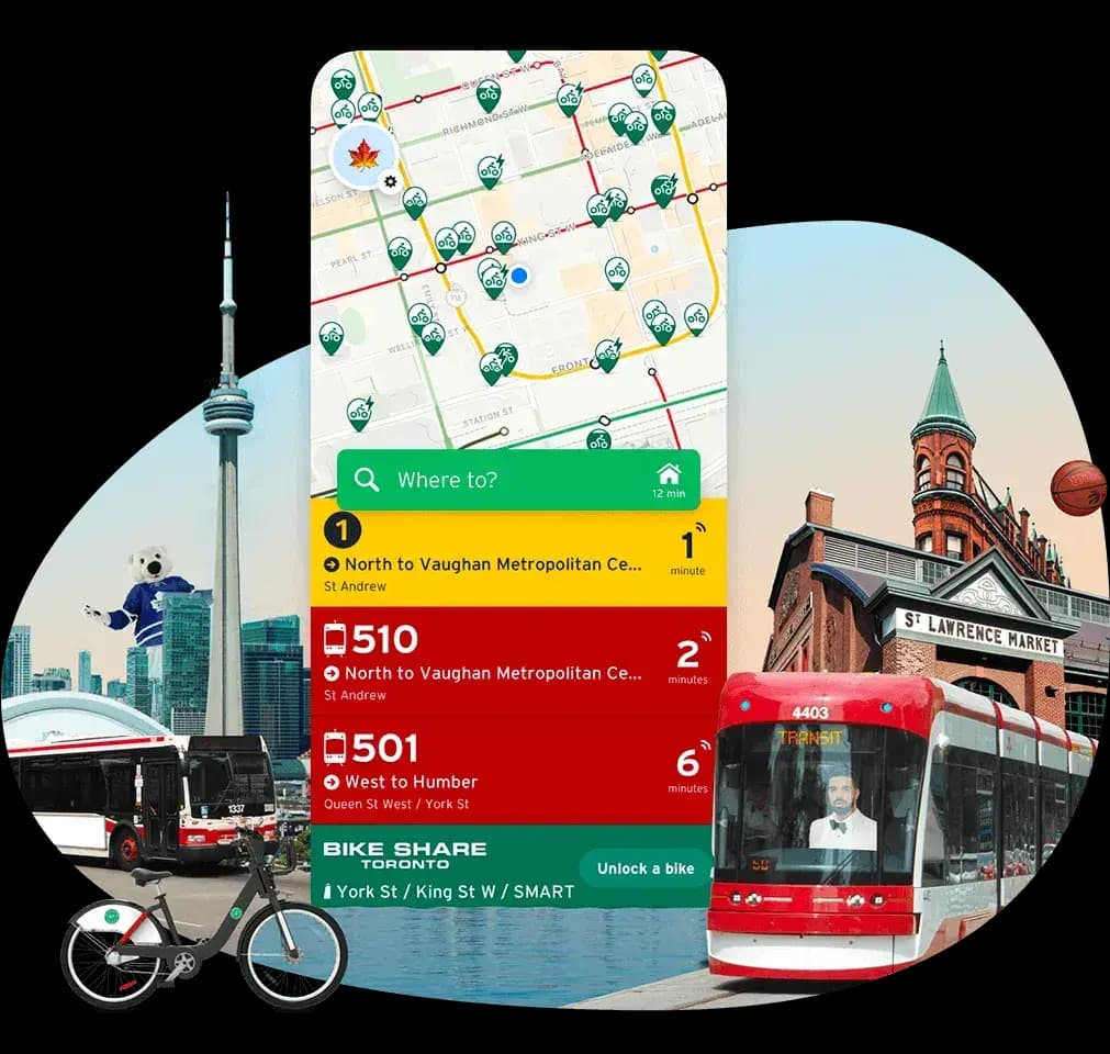 ¿Buscas la mejor aplicación de transporte público para Toronto? Con Transit tendrás acceso a todo lo que necesitas: ver las opciones de transporte público cercanas, recibir indicaciones de navegación paso a paso, planificar viajes, ver las alertas de servicio y consultar los horarios de transporte. Si buscas una aplicación de autobuses en Toronto fácil de usar o tienes que ir a un lugar que no conoces y necesitas una aplicación de metro para orientarte, en Transit tienes toda la información necesaria para viajar en transporte público.